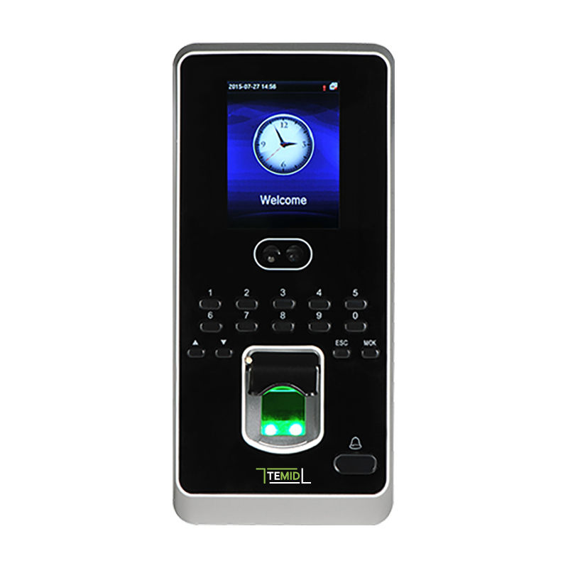 Мультибиометрический терминал учета рабочего времени и контроля доступа: распознавания лиц, отпечатка пальца, карт. Дисплей цветной 2.8" TFT. Память: лиц 1500(1:N) 4000(1:1), отпечатка пальца 4 000, событий 100 000. Опция считыватель RFID карт EM/HID/MF.