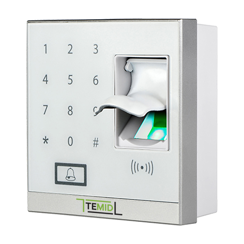 Мультибиометрический терминал учета рабочего времени и контроля доступа:, считыватель отпечатка пальца и считыватель RFID карт. Память шаблонов отпечатка пальца 500. Память RFID карт 500.Опционально: считыватель RFID карт MF. Интерфейс: Bluetooth. Входы\выходы: дверной замок, дверной датчик, кнопка выхода, «тревожный» выход, звонок.Питание DC 12В 3A. Рабочая температура 0 - 45 °C.