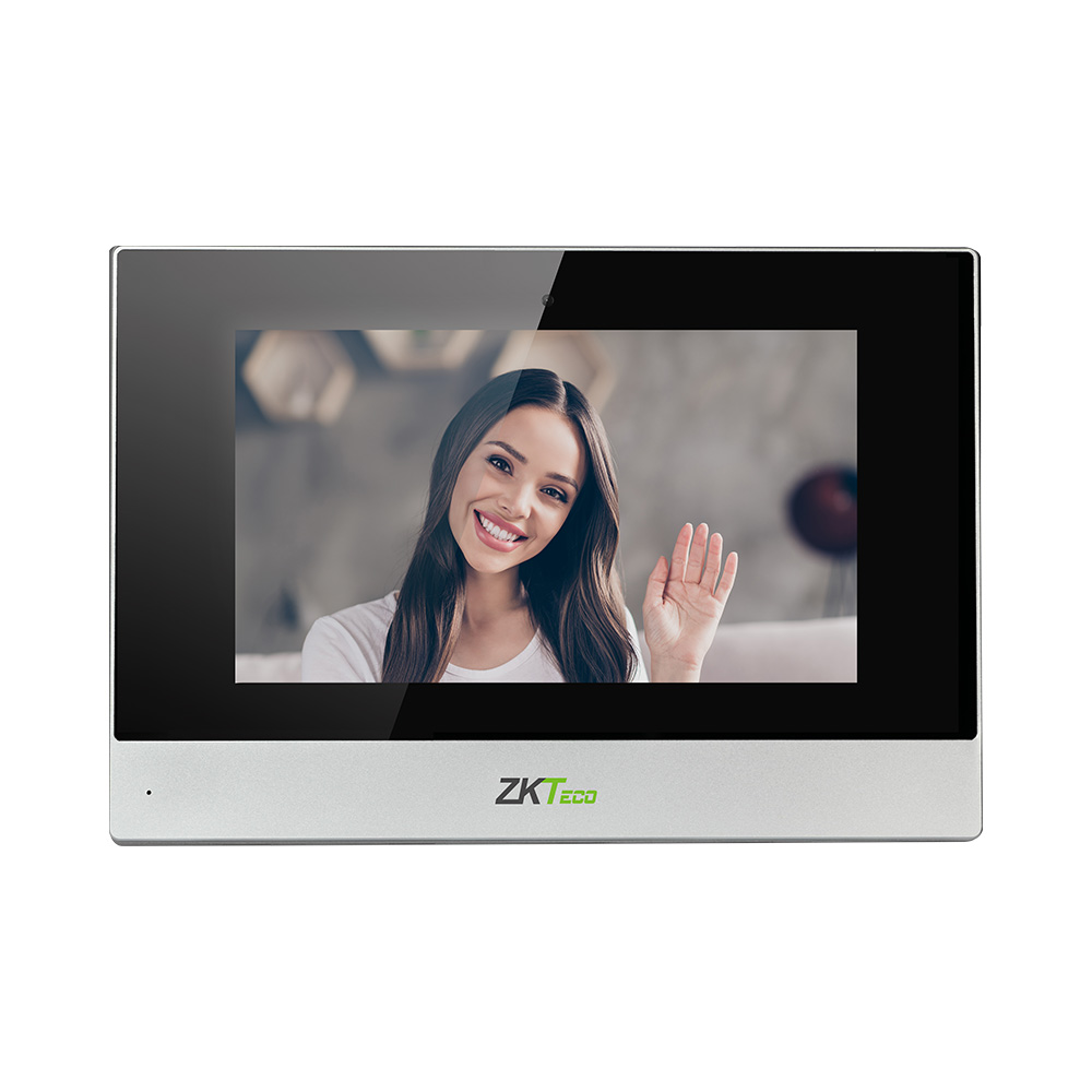 IP видеодомофон с сенсорным экраном 7". Система: Linux. Разрешение: 1024×600. Просмотр до 8 камер. Питание: PoE и + 12 В (БП в комплект не входит). Поддержка SIP 2.0. Управление разблокировкой главной двери и интеграция с системой управления лифтом.